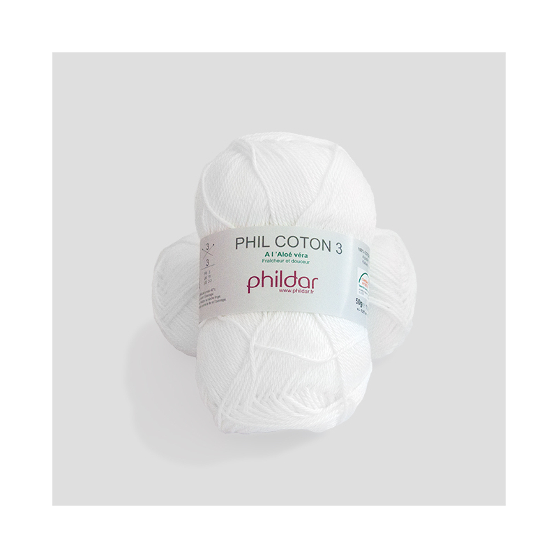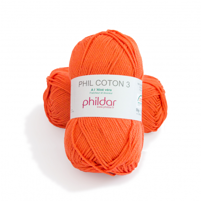 Phil coton 3 de Phildar, 100% coton, pour aiguilles et crochet n°3.