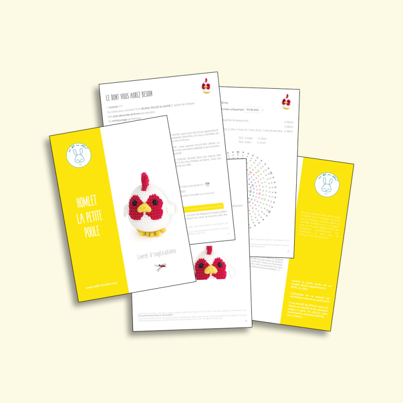 Explications pour crocheter Homlet, la poule, téléchargeables instantanément au format .PDF