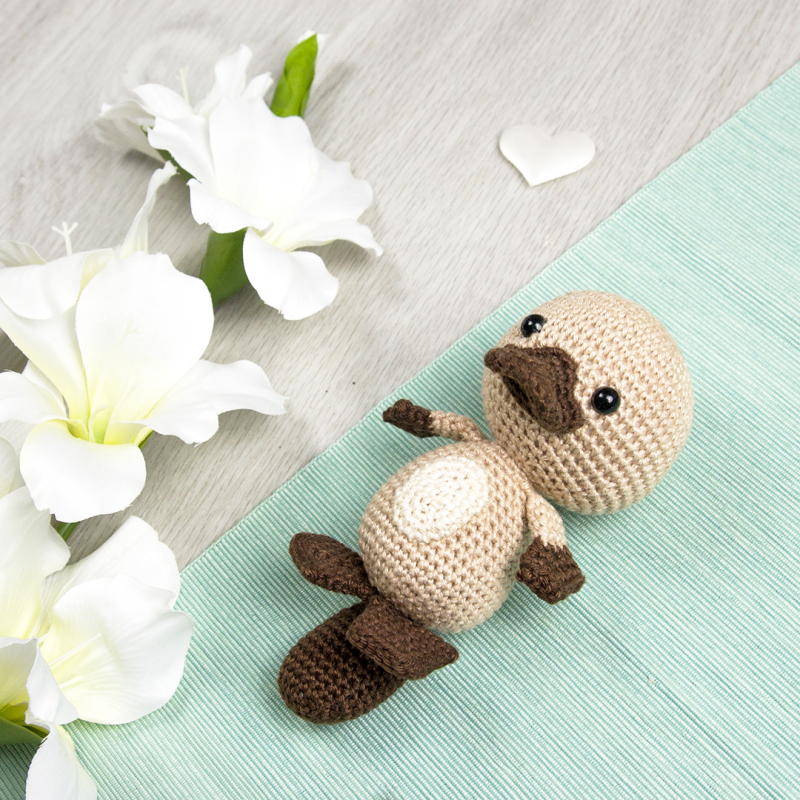 Explications pour crocheter Puss, le bébé ornithorynque, téléchargeables instantanément au format .PDF