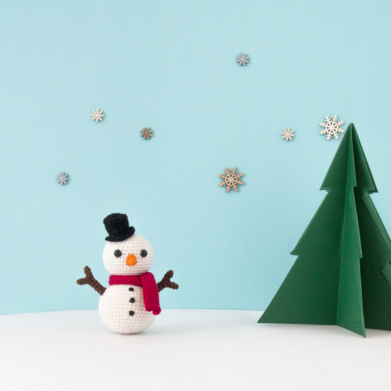 Explications pour crocheter Snowy, le bonhomme de neige, téléchargeables instantanément au format .PDF
